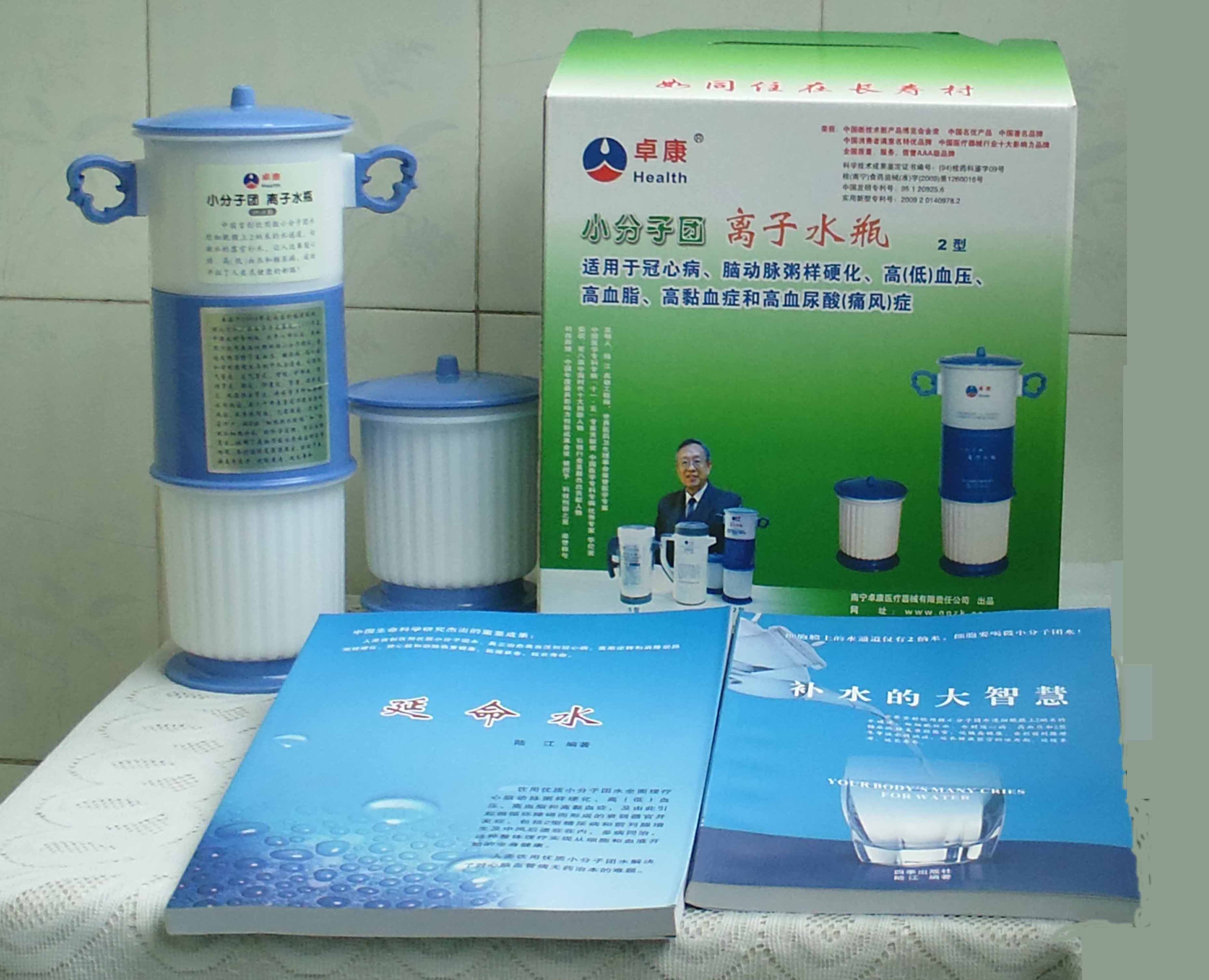本品大量用戶的使用效果表明,能治愈冠心病、腦動脈硬化、原發(fā)性高(低)血壓、高血脂、高粘血癥、高血尿酸癥(痛風)和2型糖尿病、衰弱器官并發(fā)癥(前列腺增生、腎衰與尿毒癥)及中風后遺癥等療效好。產(chǎn)品配信譽卡。使用壽命30年,不換芯,易清洗。團購優(yōu)惠。從郵局匯款,匯費1%,地址按本頁下方地址、聯(lián)系人寫。從銀行匯款,請點擊[聯(lián)系匯款]欄,從工商銀行匯款,建設銀行、農(nóng)業(yè)銀行匯款,均免收匯費,匯款后20--30分鐘內(nèi)發(fā)短信,可用微信轉(zhuǎn)帳,均免匯費,微信號即手機號13768308380。匯款后,告知你的姓名和地址,我公司聯(lián)系人手機號是:13768308380卓康牌離子水瓶為我公司獨家生產(chǎn),郵購產(chǎn)品配《補水的大智慧》彩印書一本,另配四季出版社出版的新書《補水的大智慧》一本,并配光盤一張(含央視主持人釆訪陸江的對話視頻)。目前市場和"淘寶網(wǎng)"上有人兜售假冒的偽品,望讀者審察辯別真?zhèn)危旒僬哓飧`假冒本公司的各種證、獲獎獎項、專利號和外包裝盒上的中英文字,包括科技成果的鑒定意見等,請讀者注意防偽。如何識別假貨?已經(jīng)買了假貨怎么辦?(請點擊[打假掠影][打假掠影])。